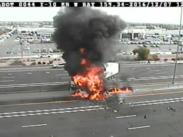 Authorities suspect that driver fatigue may have played a role in a fiery truck accident that caused massive traffic backups on I-10 EB in Phoenix near Ray Road yesterday. The crash closed several lanes and traffic was backed up for hours on I-10. Fortunately, there were no fatalities reported.